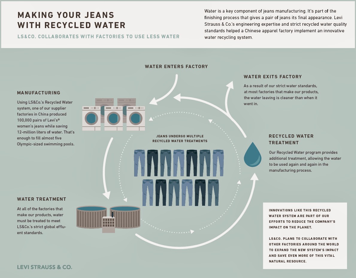 El Fabricante de ropa Levi Strauss ha desarrollado un proceso que emplea el 100 por ciento del agua en algunas partes de su producción.